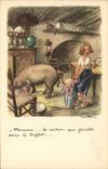 CPA Fantaisie Illustrateur Poulbot Cochon Porc